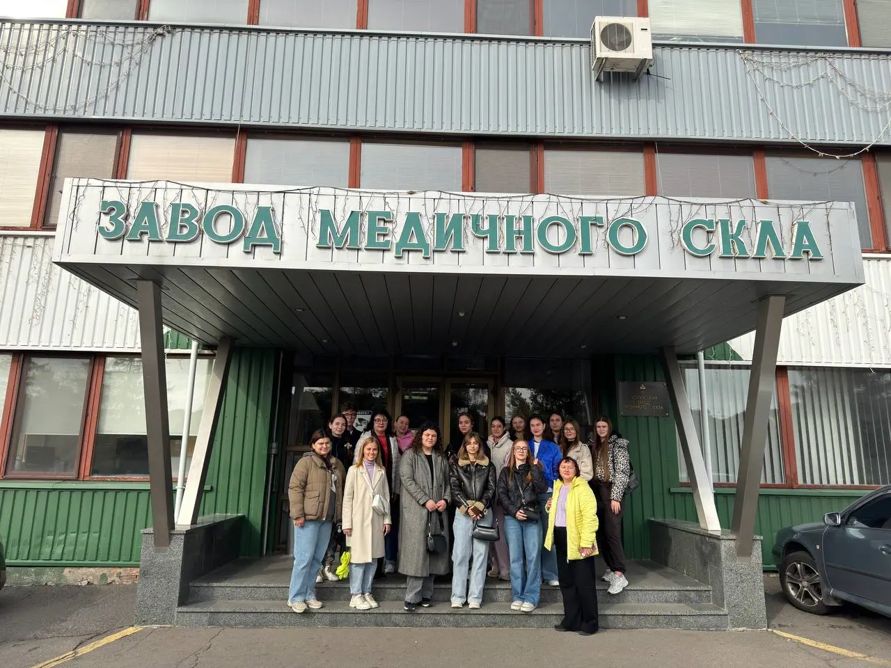 Савицька Світлана Володимирівна, заступник начальника відділу технічного контролю, провела цікаву та змістовну екскурсію виробничими підрозділами підприємства. Під час екскурсії студенти ознайомилися з технологією та основними засобами виробництва, асортиментом продукції та ринками її збуту, розглянули практичні питання використання ресурсів та екологічної відповідальності підприємства. Набуті знання про організацію роботи підприємства та його виробничих підрозділів, ресурси, що використовує підприємство та систему ресурсних платежів, природоохоронну діяльність, позитивні враження від спілкування з фахівцями підприємства – результат виробничої екскурсії на АТ «Полтавський завод медичного скла».