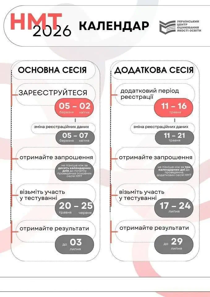 З 5 березня до 2 квітня 2026 року триває основний період реєстрації осіб, які мають намір узяти участь у національному мультипредметному тесті (НМТ). Порядок реєстрації визначено у відповідному документі.