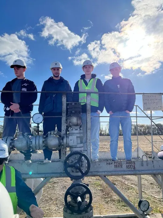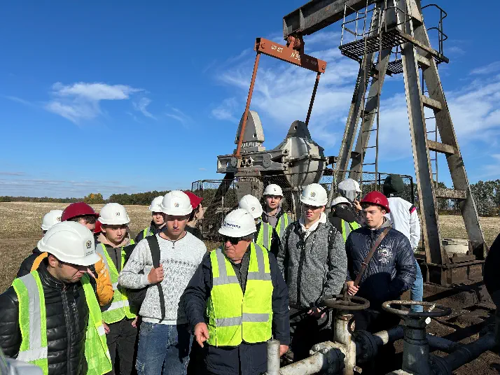 Також студенти відвідали польові свердловини, де їм продемонстрували в роботі фонтанну арматуру та штангову свердловинну насосну установку. Це дало можливість не тільки побачити процес механізованого нафтовидобутку в дії, але й оцінити потужність обладнання, яке забезпечує стабільну роботу реальних свердловин.