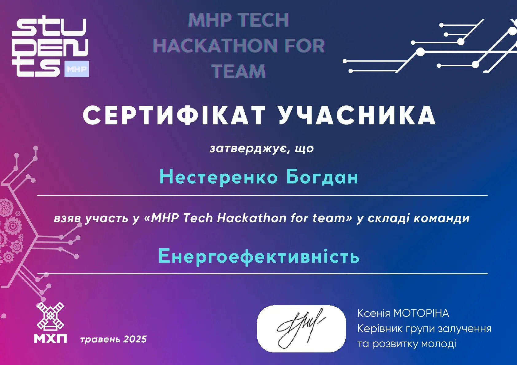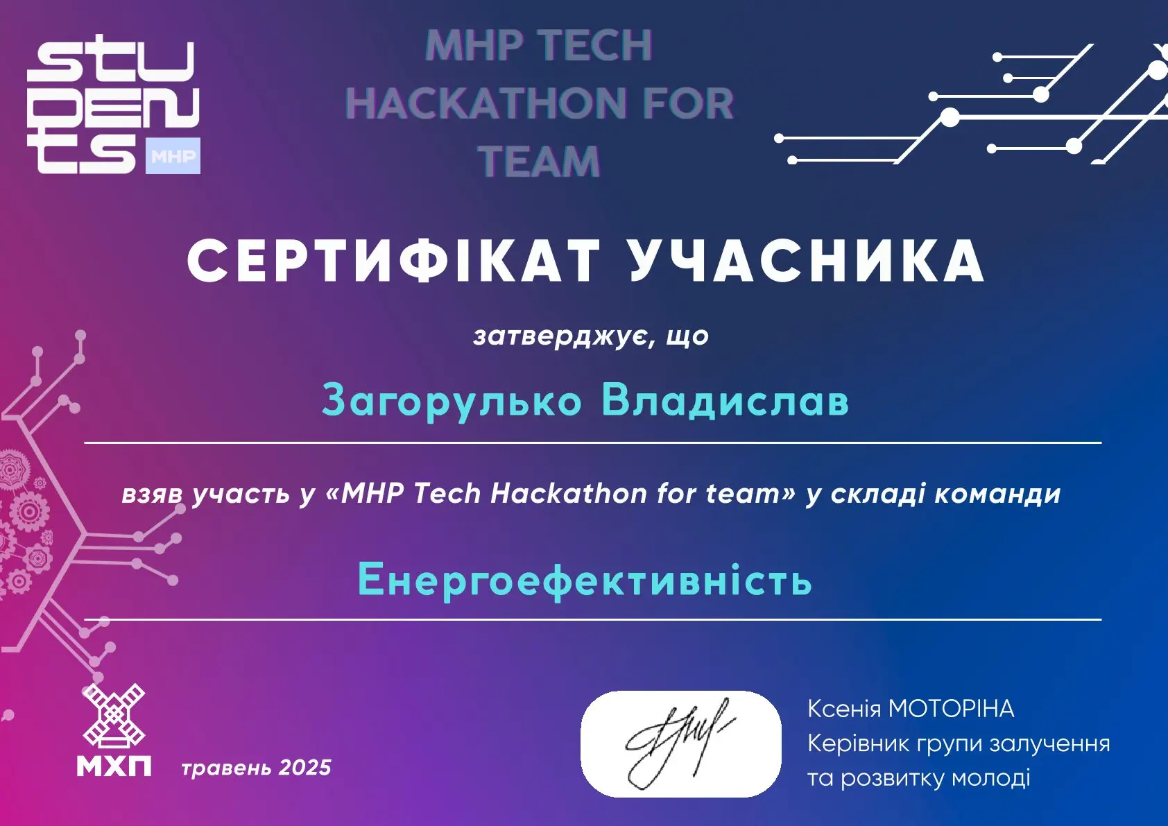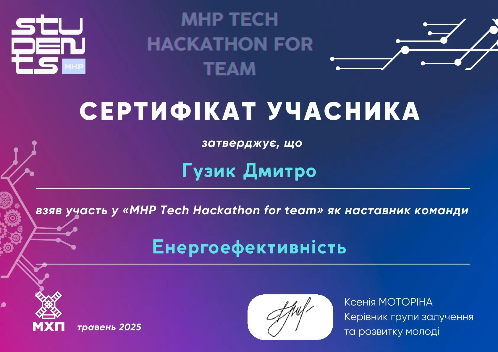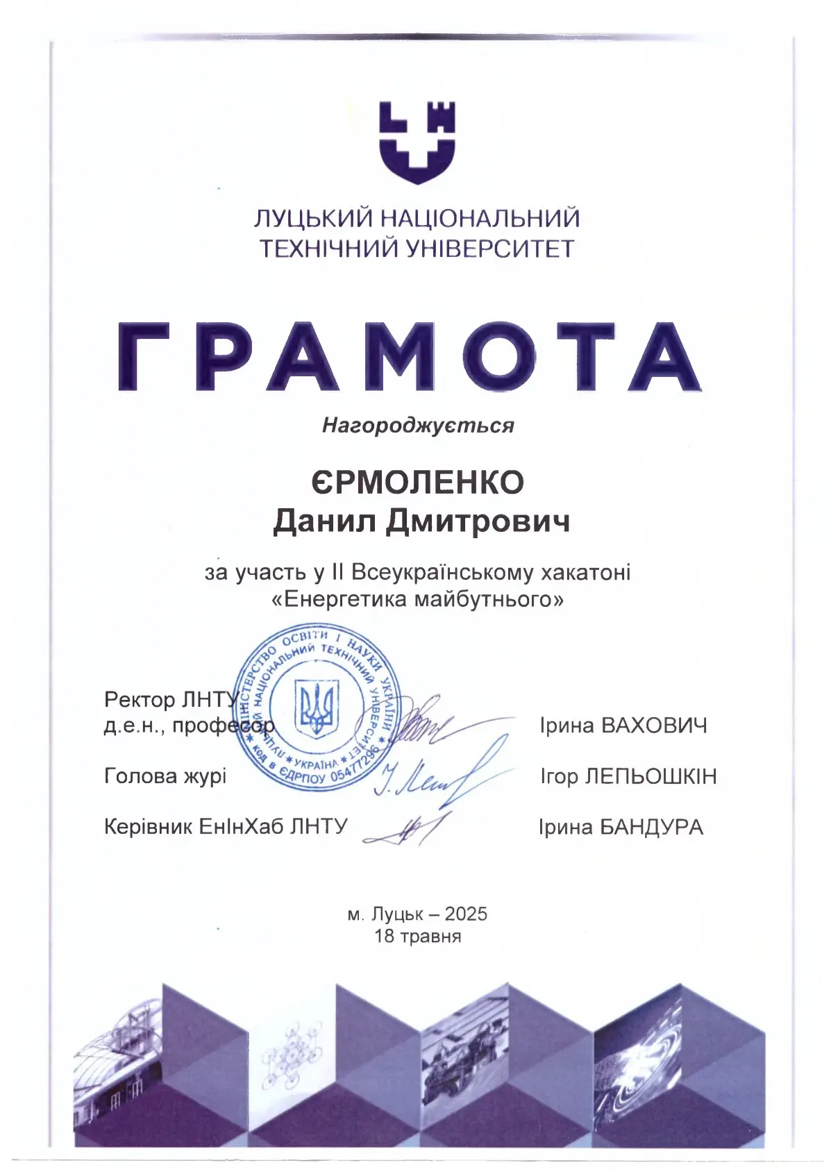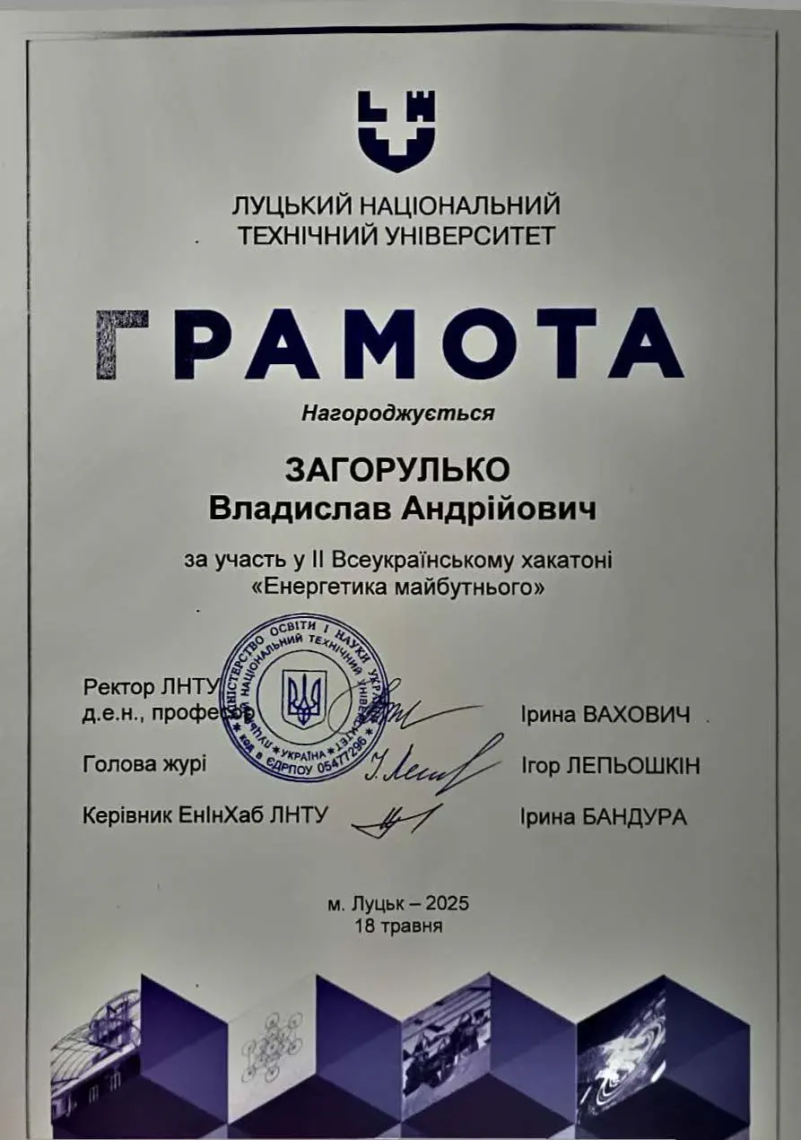 Хакатон «Енергетика майбутнього», Луцьк, 2024 (1 команда-призери і 1 команда-учасниця)