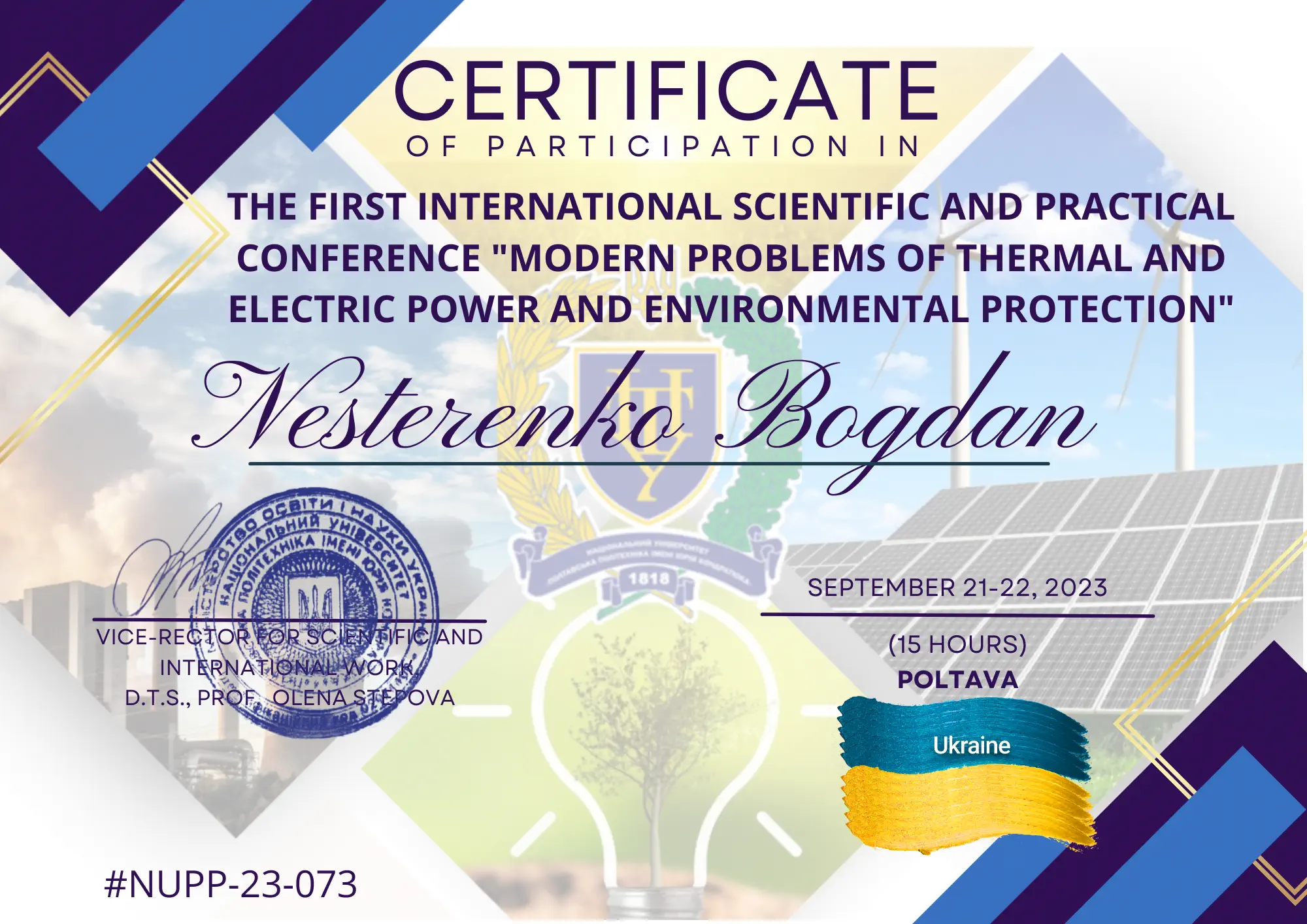 - Експериментальне дослідження теплотворної здатності палива (RDF паливо) з твердих побутових відходів.
