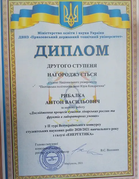 - Дослідження процесів сушіння овочів, фруктів та лікарських рослин.