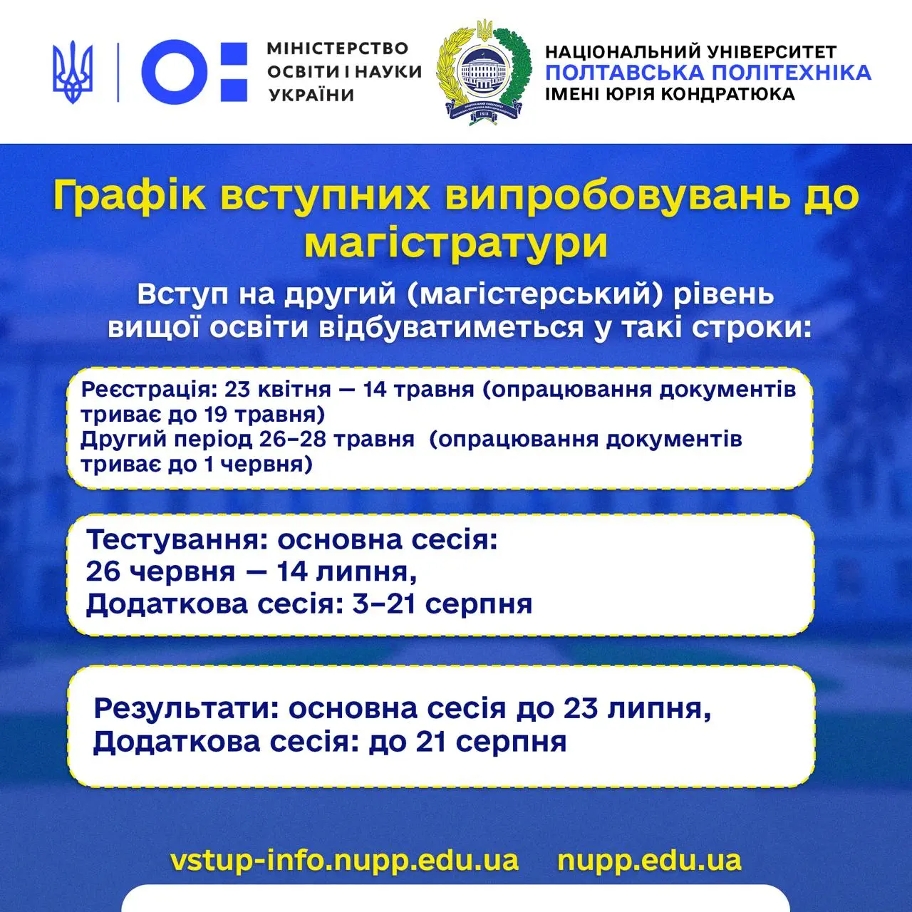Відповідно до наказу МОН від 24.12.2025 №1701, цьогоріч передбачено проведення основних і додаткових сесій тестування. Основні проходитимуть протягом 26 червня – 14 липня; додаткові — 03–21 серпня.